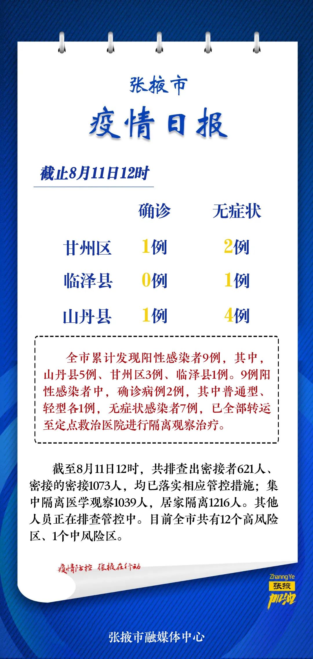 張掖市疫情日?qǐng)?bào)(8月11日)