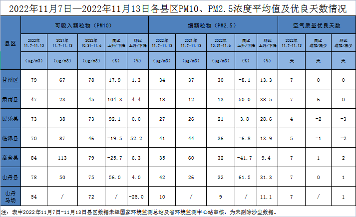 張掖市各縣區(qū)空氣質(zhì)量周報(bào)