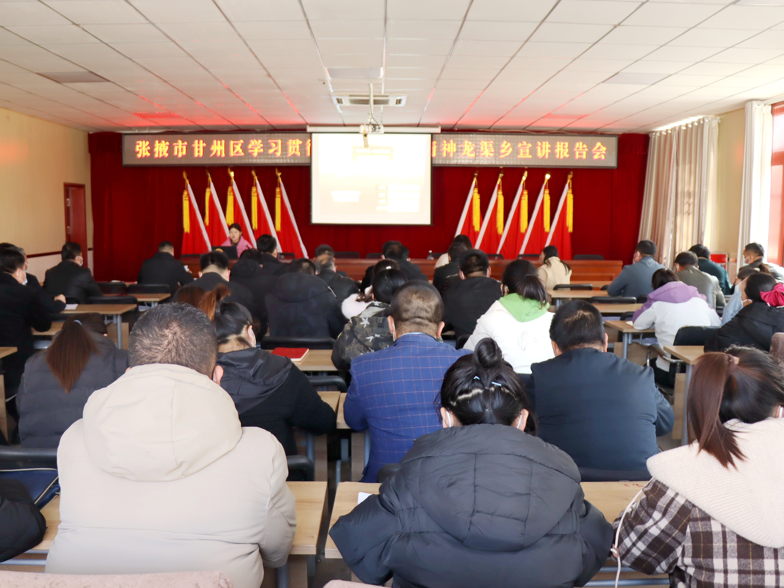 中國張掖網甘州訊 為深入學習宣傳貫徹黨的二十大精神,切實把全鄉黨員干部的思想和行動統一到黨的二十大精神上來,把智慧和力量凝聚到黨的二十大精神確定的目標任務上來。近日,甘州區龍渠鄉開展張掖市甘州區學習貫徹黨的二十大精神宣講報告會,邀請區委黨校講師進行專題輔導,鄉機關領導干部、各村黨支部書記(副書記)、村委會主任(副主任)、文書、駐村工作隊參加。