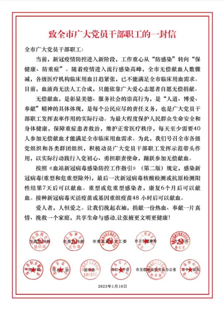 致全市廣大黨員干部職工的一封信