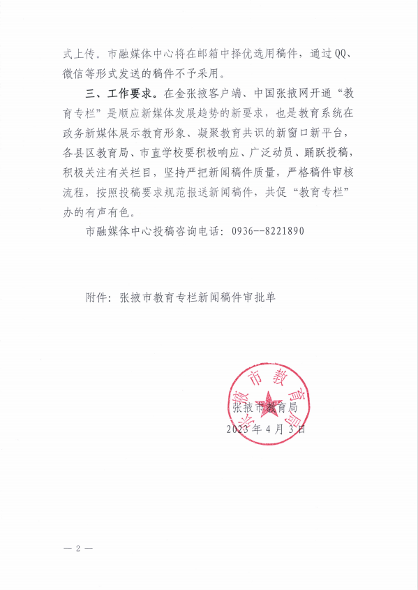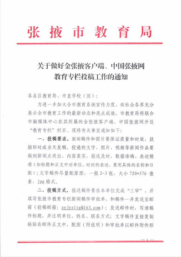 您當前的位置 : 中國張掖網 >> 教育 >> 張掖教育 關于做好金張掖客戶端、中國張掖網教育專欄投稿工作的通知 來源:張掖市融媒體中心 0 人參與互動 2023年04月10日 17:41