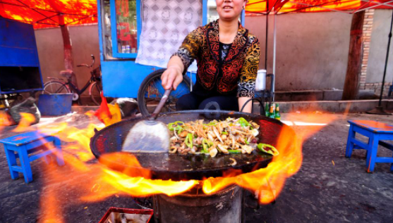 炒撥拉又稱炒撥拉子,是山丹縣風味獨特的著名街頭小吃之一,源于何時已無從考證,因其動作而得名。炒撥拉子冬季進食最佳,邊炒邊吃、麻辣適度、肥而不膩、煙熏火燎、美味可口、熱熱乎乎,使食用者身冷而心熱,如果再呷上幾口山丹紅酒會更爽,實為山丹一絕。有俗語說“不吃炒撥拉,等于沒到山丹”,炒撥拉被戲稱為“山丹國宴”。制作方法:在露天升上火爐,火爐上支起鑄鐵鏊子,放入大油,燒至八九成熟時,將切成片的羊心、肝、肺、肚、腸等(也有用豬、牛臟器的)拌入蔥段、姜絲、蒜苗段以及花椒粉、青椒絲或紅辣椒粉同時下鍋,如果是豬下水,還要加上八角粉,用猛火爆炒2—3分鐘,待熟即食。燃料以柴火為最佳。炒撥拉最獨特之處是其鍋較大,所以在同一鍋內,可以允許多人同時進餐,即使彼此不認識,也可以在同一鍋內進餐。炒撥拉作為山丹的地方名吃,取材廣泛,花色繁多,營養合理,主輔兼備,獨具風采,體現了傳統烹飪的高超技巧,凝聚了當地的自然、經濟、社會、文化和風土人情,是地方文化的集中體現。 2015年8月13日,山丹炒撥拉(張掖地方風味小吃制作技藝)被張掖市人民政府列入張掖市第三批市級非物質文化遺產代表性項目名錄。保護單位:張掖市山丹縣文化館。