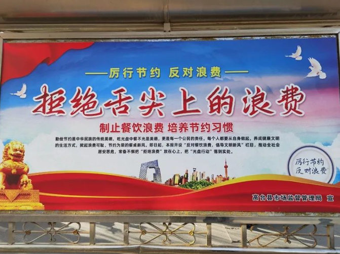強化宣傳引導,營造文明餐桌風尚。充分利用“3·15”國際消費者權益日、食品安全宣傳周、環(huán)境保護日等契機,在濕地新區(qū)主干道制作宣傳展板,印制《反食品浪費法》宣傳畫冊5000份,向群眾普及勤儉節(jié)約,宣傳浪費糧食的嚴重性及厲行勤儉節(jié)約的必要性,倡導自覺踐行“光盤”行動,堅決抵制“舌尖上的浪費”,舉辦“倡導文明餐桌,制止餐浪費”倡議活動5場次,簽訂《創(chuàng)建國家食品安全示范城市誠信經(jīng)營承諾書》700余份,推廣文明餐桌禮儀,爭做“文明餐桌”行動的踐行者,餐飲服務單位經(jīng)營場所張貼“厲行節(jié)約,反對浪費”等宣傳標語海報5000余張,讓文明餐桌理念貫穿餐飲服務全過程,推動制止餐飲浪費取得實效。充分利用微信、QQ、釘釘群等向廣大群眾和餐飲服務單位廣泛宣傳《厲行節(jié)約反食品浪費倡議書》,依托縣融媒體中心、高臺政務網(wǎng)、微信公眾號以及電子顯示屏等向市民常態(tài)化宣傳綠色消費、文明用餐理念,營造了社會廣泛關注、群眾參與其中、人人獲益其中的文明用餐的良好氛圍。
