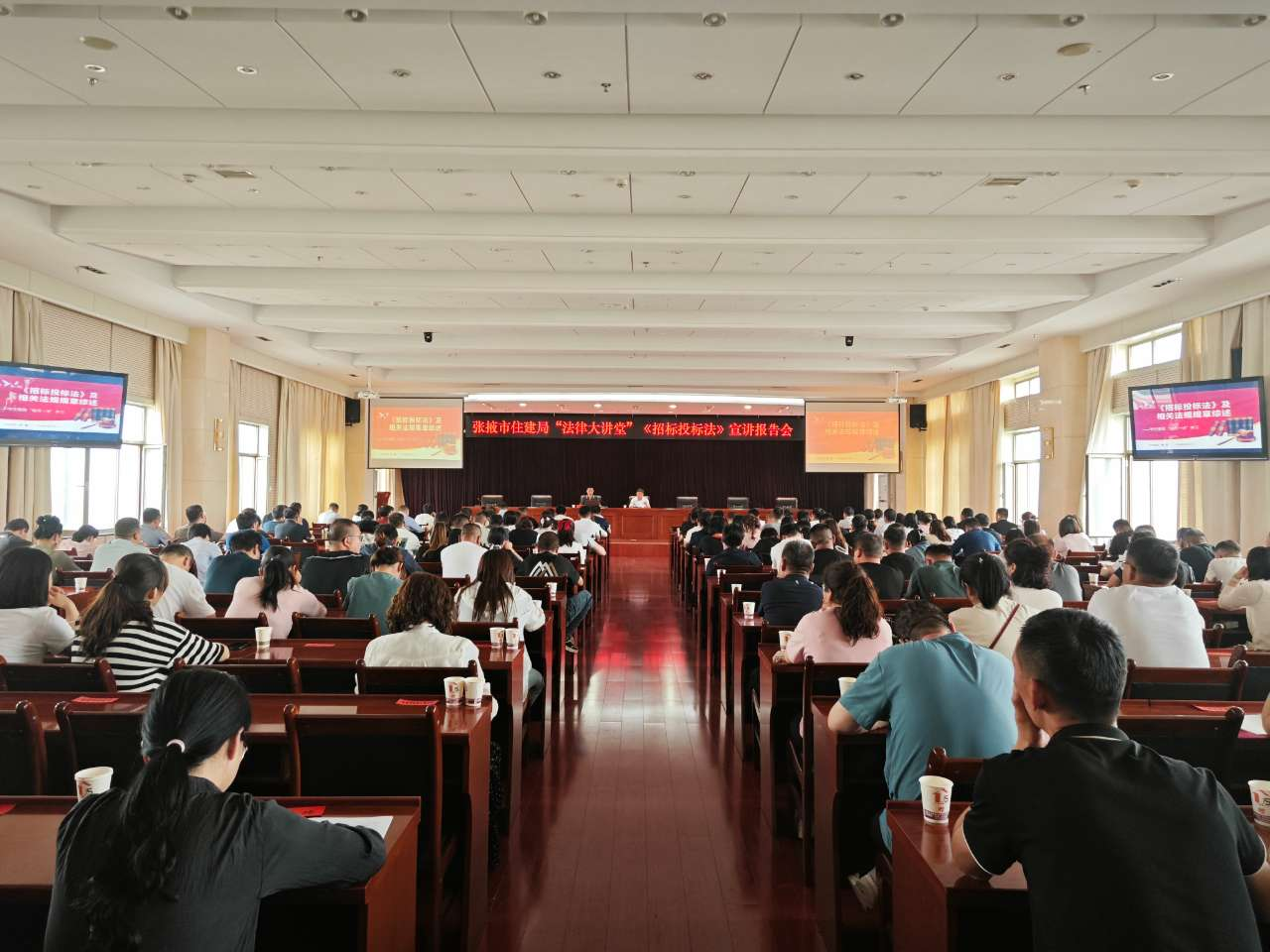 以身先之,領導帶頭授課。“上有所行,下有所仿。”住建局領導帶頭學習貫徹習近平法治思想,堅持把法治教育融入日常,抓在經常,堅決扛牢“法治建設第一責任人”職責,成功舉辦全市住建領域《招標投標法》等普法宣傳專題講座,從立法背景、立法目的、解決的主要問題、重點條款理解適用、實施路徑等方面全方位多角度開展宣貫,結合具體案例,因地制宜以案釋法,指導建筑市場各方主體規范市場行為。