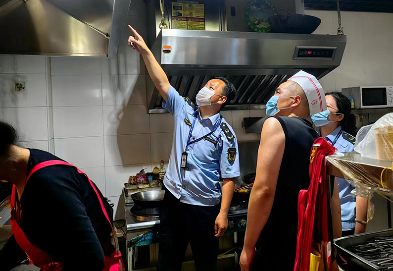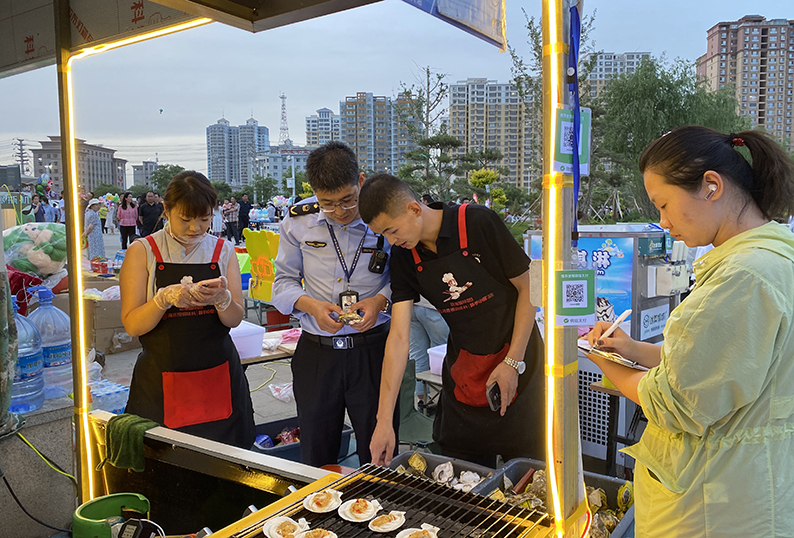 該所重點對轄區(qū)52家燒烤店、4家夜市經(jīng)營單位是否亮證經(jīng)營、從業(yè)人員是否取得健康證、后廚和就餐場所環(huán)境是否干凈衛(wèi)生、病媒防治設施是否齊全、原料采購是否履行進貨查驗制度、食材存放是否符合規(guī)范、經(jīng)營場所是否存在過期腐爛變質食品等情況全面排查。檢查中,執(zhí)法人員要求經(jīng)營單位切實履行主體責任,嚴把食品質量關,厲行節(jié)儉,反對餐飲浪費。同時,提醒廣大市民夏季高溫食物易腐敗變質,大家在享受美食過程中,要格外關注食品安全,培養(yǎng)良好用餐習慣,發(fā)現(xiàn)問題隱患及時撥打“12315”投訴舉報。