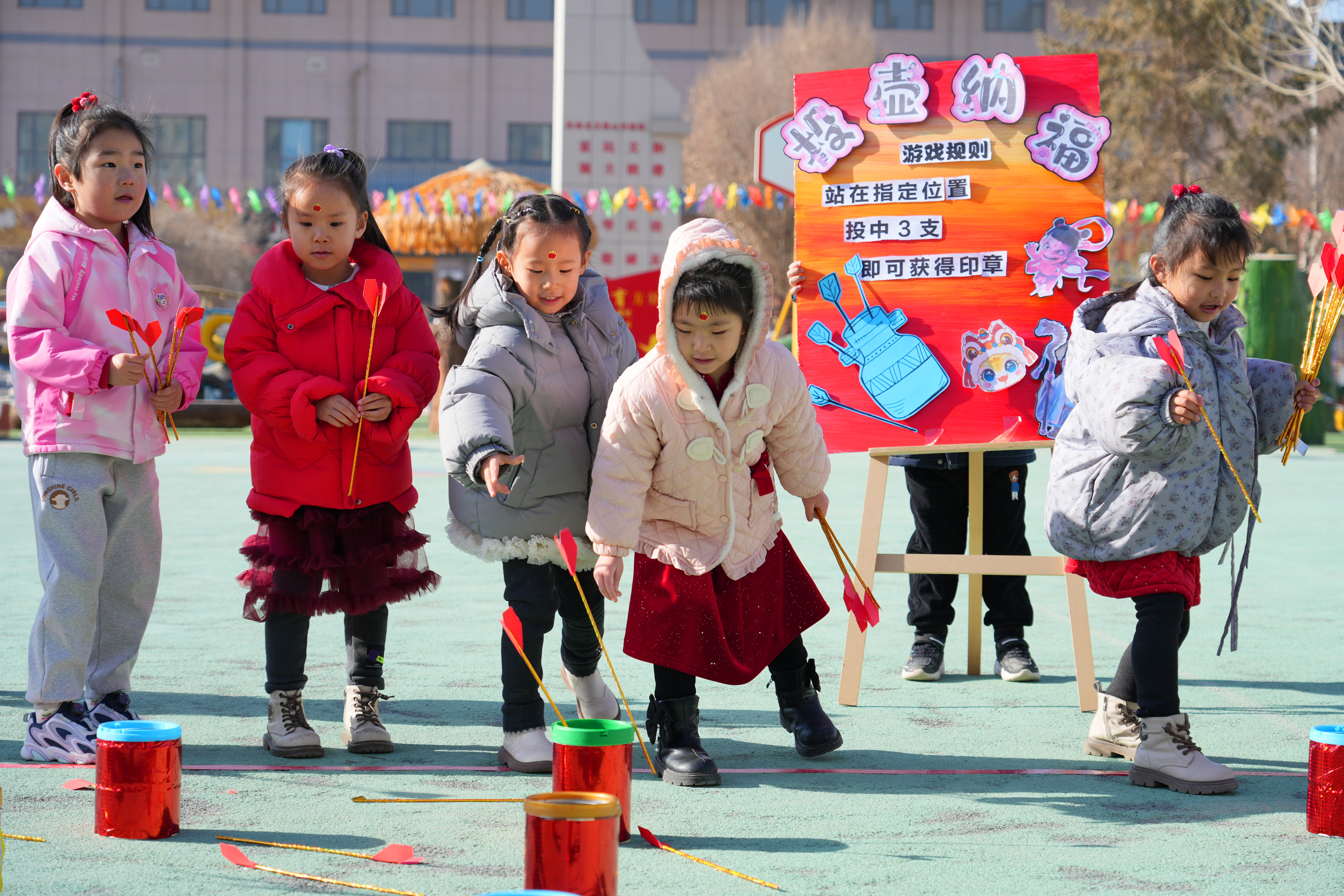 春啟新程,“幼”遇美好。老師們早已在門口等候:“早上好!”“歡迎回家!”……熱情的問候、暖心的擁抱,孩子們的臉上洋溢著開心的笑容。沉浸式體驗“投壺納福”“勇闖混天綾”“哪吒喊你來套圈”等民間傳統游戲,元氣滿滿開啟新學期。(陳彩霞 李云梅 張麗梅)